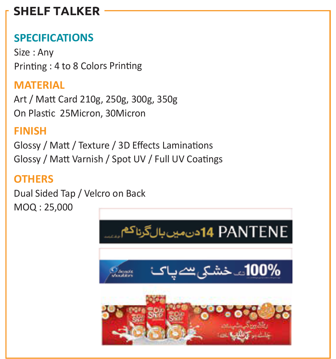 Wasa Printer (Pvt.) Ltd. specialises in offering Point of Sales Marketing material. From conventional items like posters and buntings to contemporary designs like shelf talkers, shelf fins and dummy packs, we have it all.
